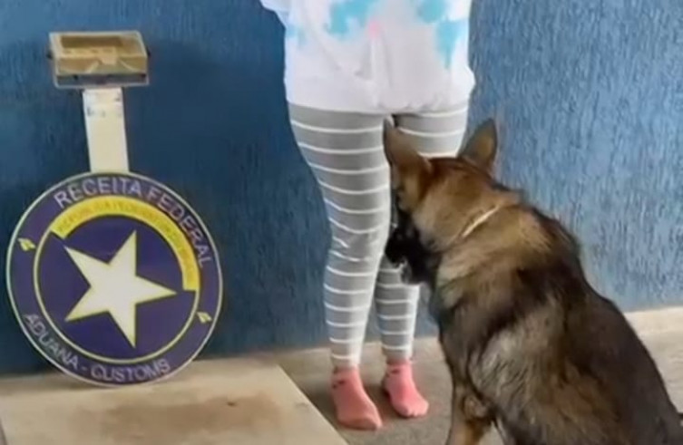 Cão de faro indicou a presença de droga sob a blusa da mulher