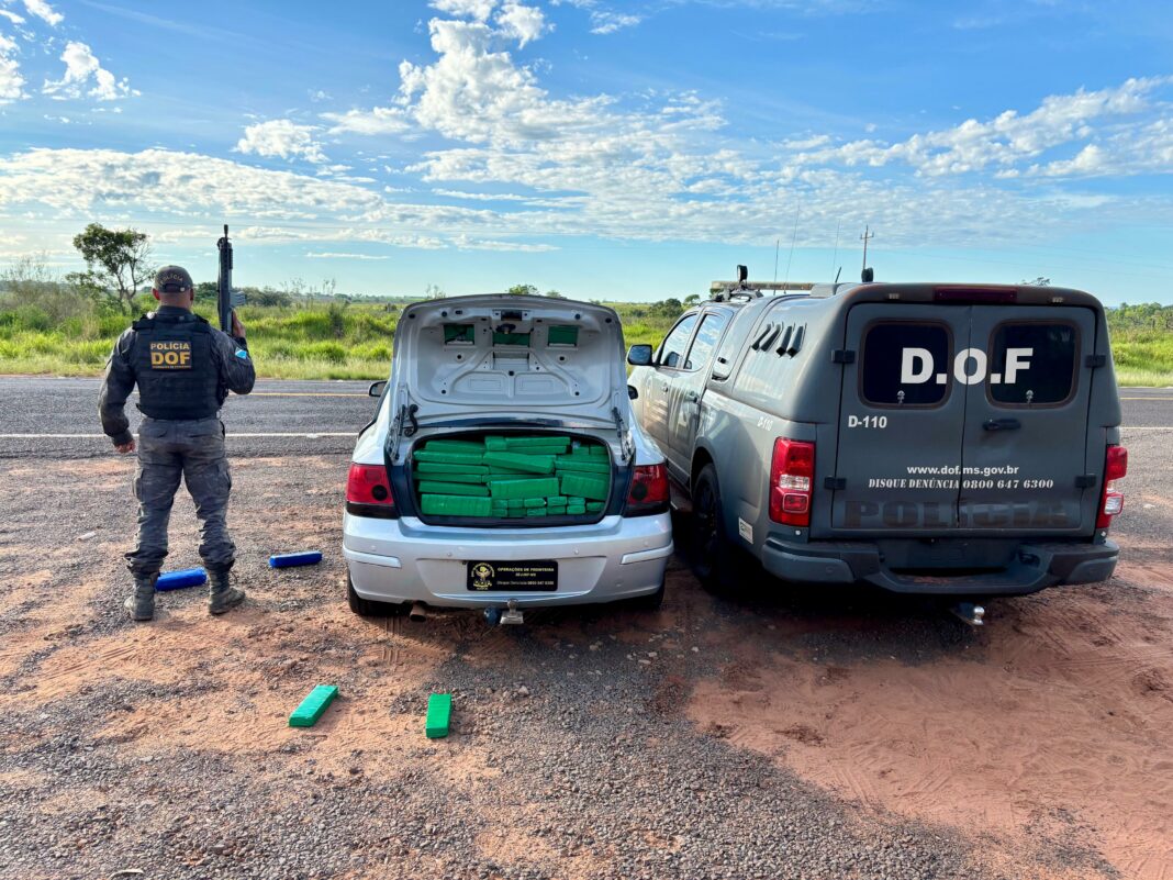 Policiais militares do DOF (Departamento de Operações de Fronteira) apreenderam, nesta segunda-feira (10), na MS-295, em Paranhos, 547 quilos de maconha que eram transportados em um veículo GM Vectra. Na ação, um homem de 19 anos foi preso e uma adolescente de 16 anos apreendida.