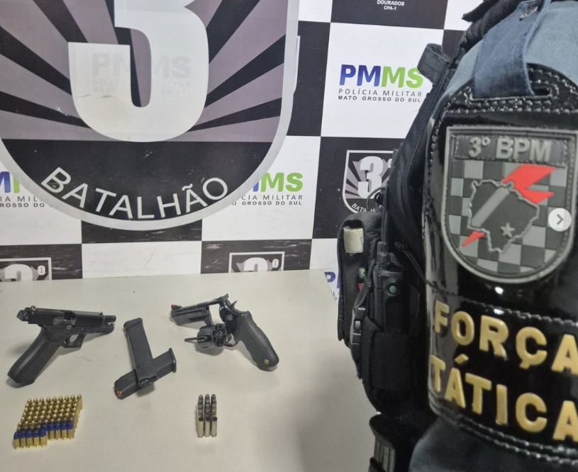 O fato ocorreu no bairro Jardim Monte Líbano, sendo que interior do imóvel, as armas foram localizadas ao lado do colchão onde os dois indivíduos estavam, sendo apreendidas uma pistola Glock G17 calibre 9mm, com numeração suprimida, dois carregadores sendo um deles do tipo estendido com capacidade de 31 cartuchos e um revólver Taurus calibre .357, além de grande quantidade de munições.
