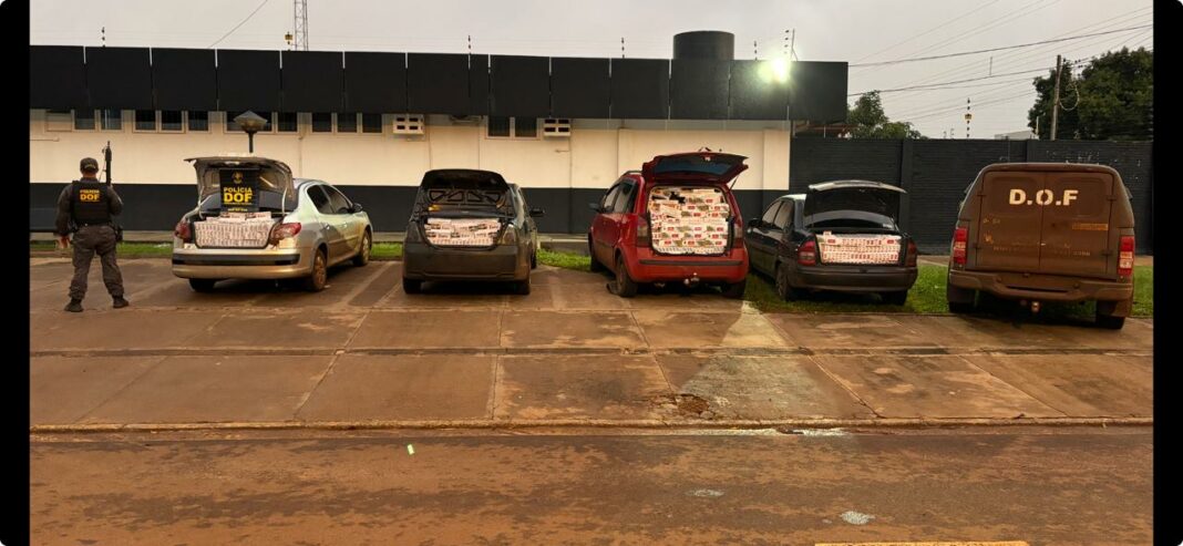 Os militares realizavam bloqueio, quando interceptaram um comboio composto por quatro veículos: um Ford Fiesta, um Peugeot 207, um Fiat Idea e um Chevrolet Classic. Durante as vistorias, as equipes localizaram 3.200 pacotes de cigarros e diversos produtos de descaminho.