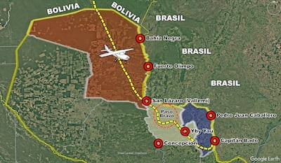 A rota que o avião de drogas seguiu da Bolívia até Capitán Bado, apesar de ser perseguido por dois aviões de combate da Força Aérea Paraguaia (FAP), teve a operação de tráfico de cocaína aparentemente concluída