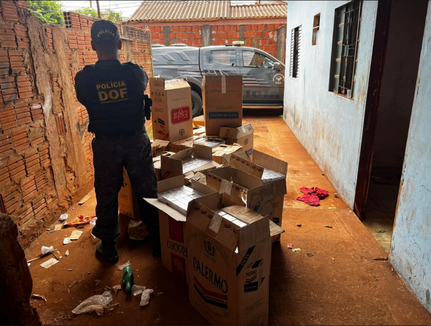 A equipe realizava patrulhamento quando recebeu denúncias anônimas relatando a movimentação suspeita de caixas em uma residência no bairro Parque das Nações I. No local, os militares visualizaram diversos volumes de cigarros na varanda do imóvel e no interior do furgão estacionado.