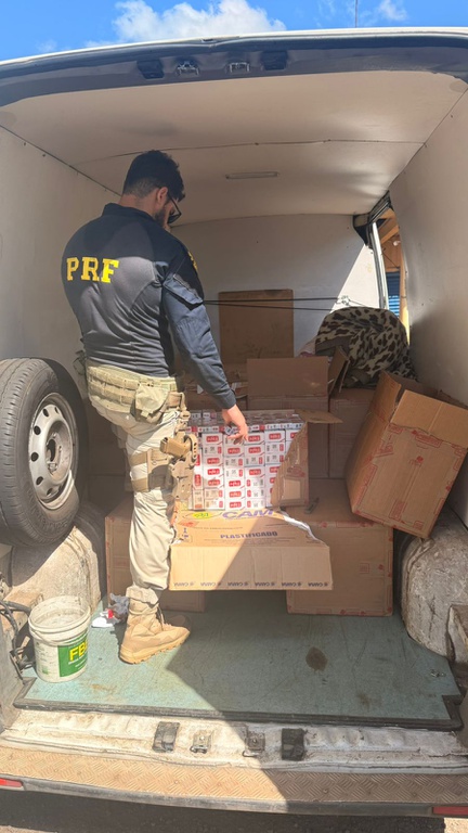 A mercadoria era transportada em uma van, abordada na BR-267. O motorista disse que transportava roupas, porém ao fiscalizar a carga, os policiais encontraram caixas de cigarros de origem estrangeira.