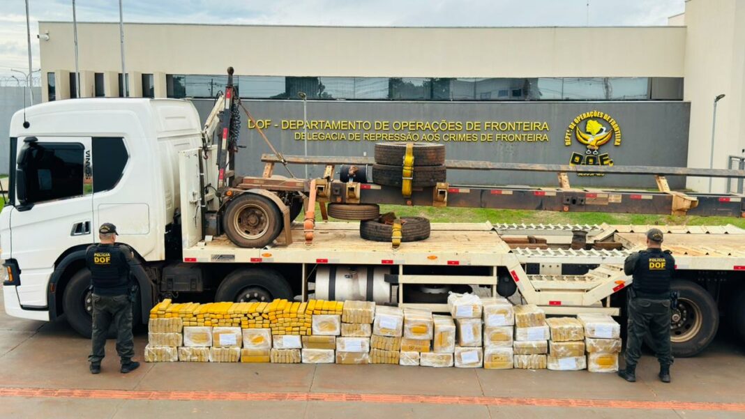 Policiais militares do DOF (Departamento de Operações de Fronteira) apreenderam, neste domingo (12), em Ivinhema, 1.200 quilos de maconha que eram transportados em um caminhão Scania. Na ação, dois homens de 32 anos foram presos em flagrante.