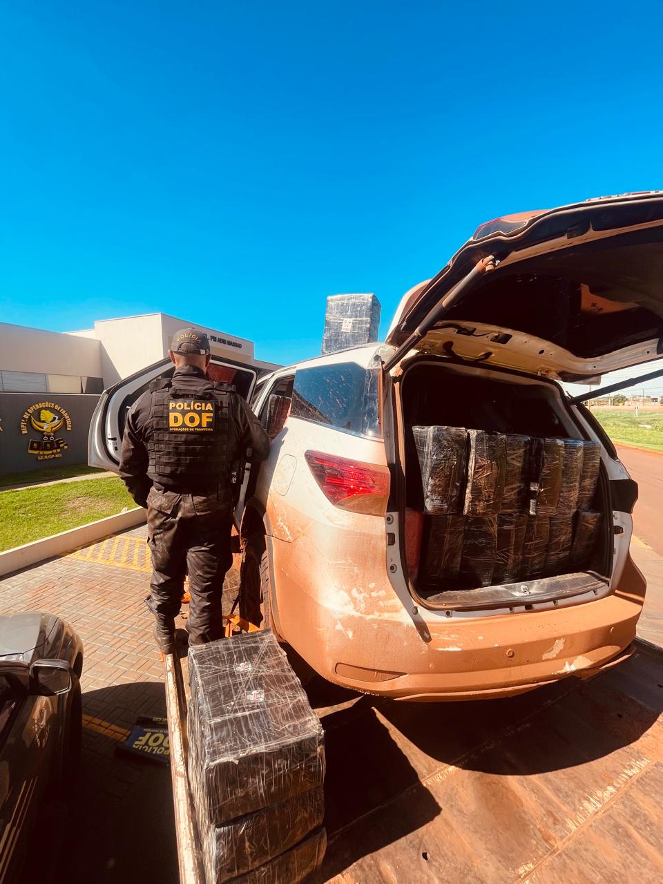 Policiais militares do DOF (Departamento de Operações de Fronteira) apreenderam, nesta quarta-feira (22), em Sete Quedas, 1.900 quilos de maconha que eram transportados em uma Toyota SW4, roubada no Estado de Santa Catarina. Na ação, ninguém foi preso.